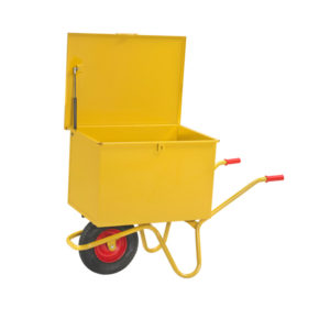 160ltr/200kg capacity. With a pneumatic 4.00×8 wheel with ball bearings. Fittings for padlock. Powdercoated yellow.
